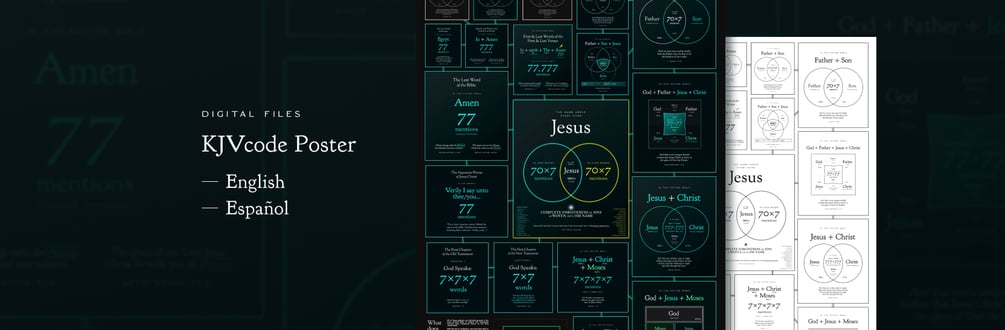 B1-sized poster (27.8 × 39.4 in) showcases some of the major patterns featured on KJVCode.com, where mathematics and scripture meet to reveal God’s hand in the King James Bible. Each pattern highlights precise numerical alignments, serving as both an elegant visual display and a powerful apologetic tool, pointing to Jesus as the center of all perfection.